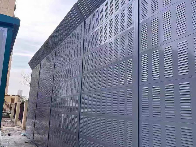 廠區隔音屏(聲屏障)主要由鋼結構立柱和吸隔聲屏板兩部分組成,立柱是隔音墻的主要受力構件,它通過螺栓或焊接固定在墻體或地面預埋鋼板上;吸隔聲板是主要的隔聲吸聲構件,它通過高強彈簧卡子將其固定在H型立柱槽內,形成隔音墻。