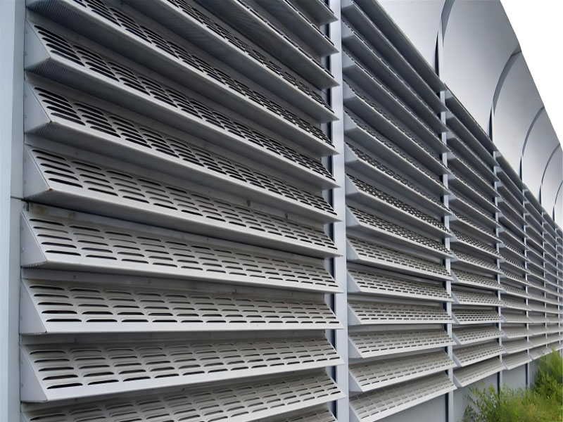 金屬三角錐聲屏障是指金屬聲屏障屏體靠近噪聲源的一面,增設了一個三角錐造型的表面屏體,屏體上有很多吸音孔洞,增加了吸音面積,穩定降低聲音對周圍環境造成的噪音污染。單從聲屏障金屬屏體工藝角度對比,吸音能力更強的是尖劈式聲屏障屏體。